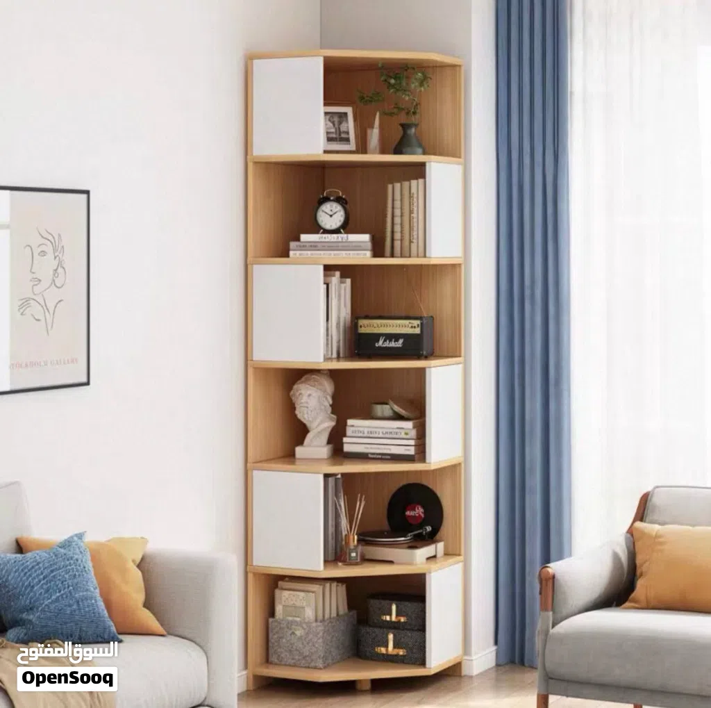 رف زاوية مثالي لتنظيم الكتب، الديكورات أو مستلزمات البيت بأسلوب مرتب وناعم