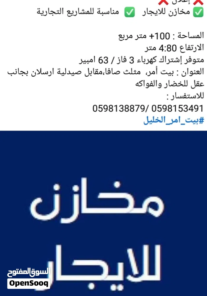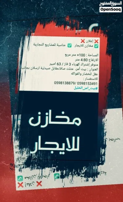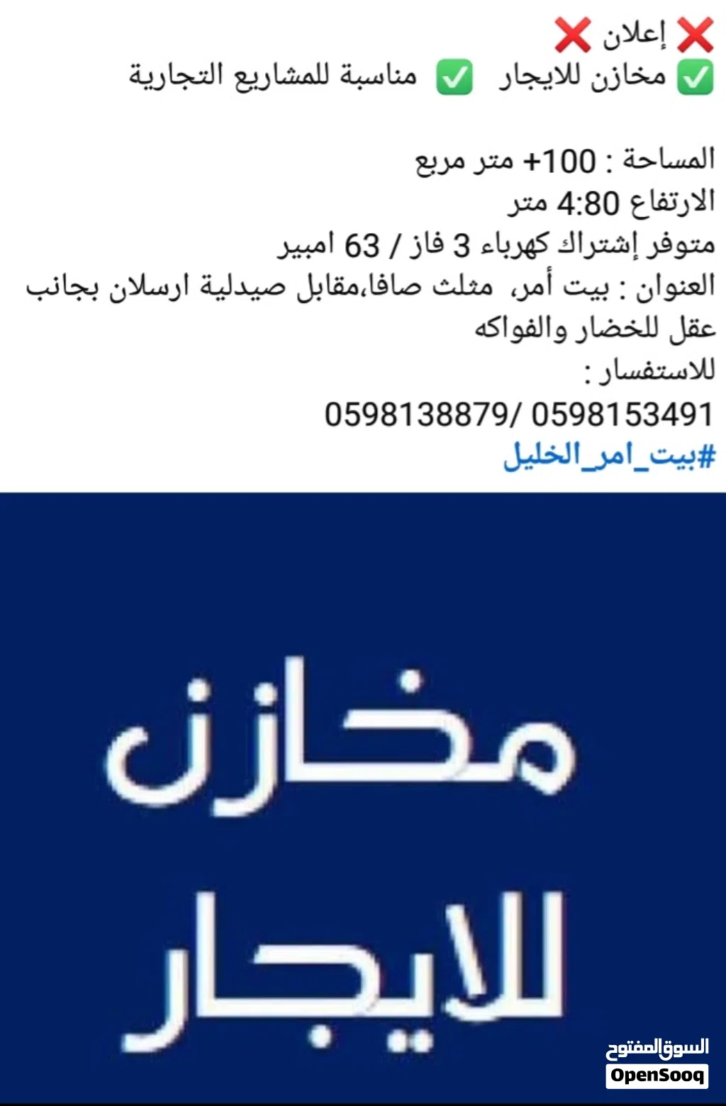 مخازن للايجار مناسبة لكافة الأعمال التجارية موقع حيوي ونشط لتواصلاضغط لإظهار رقم الهاتف 9705981534XX/اضغط لإظهار رقم الهاتف 9705981388XX