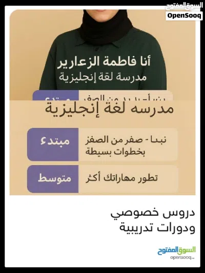في ظل الظروف الحالية وتوقف المدارس، تعلنالمعلمة فاطمة الزعاريرعن بدء التسجيل في دورات تقوية وتأسيس في اللغة الإنجليزية والفرنسية لجميع المراحل.