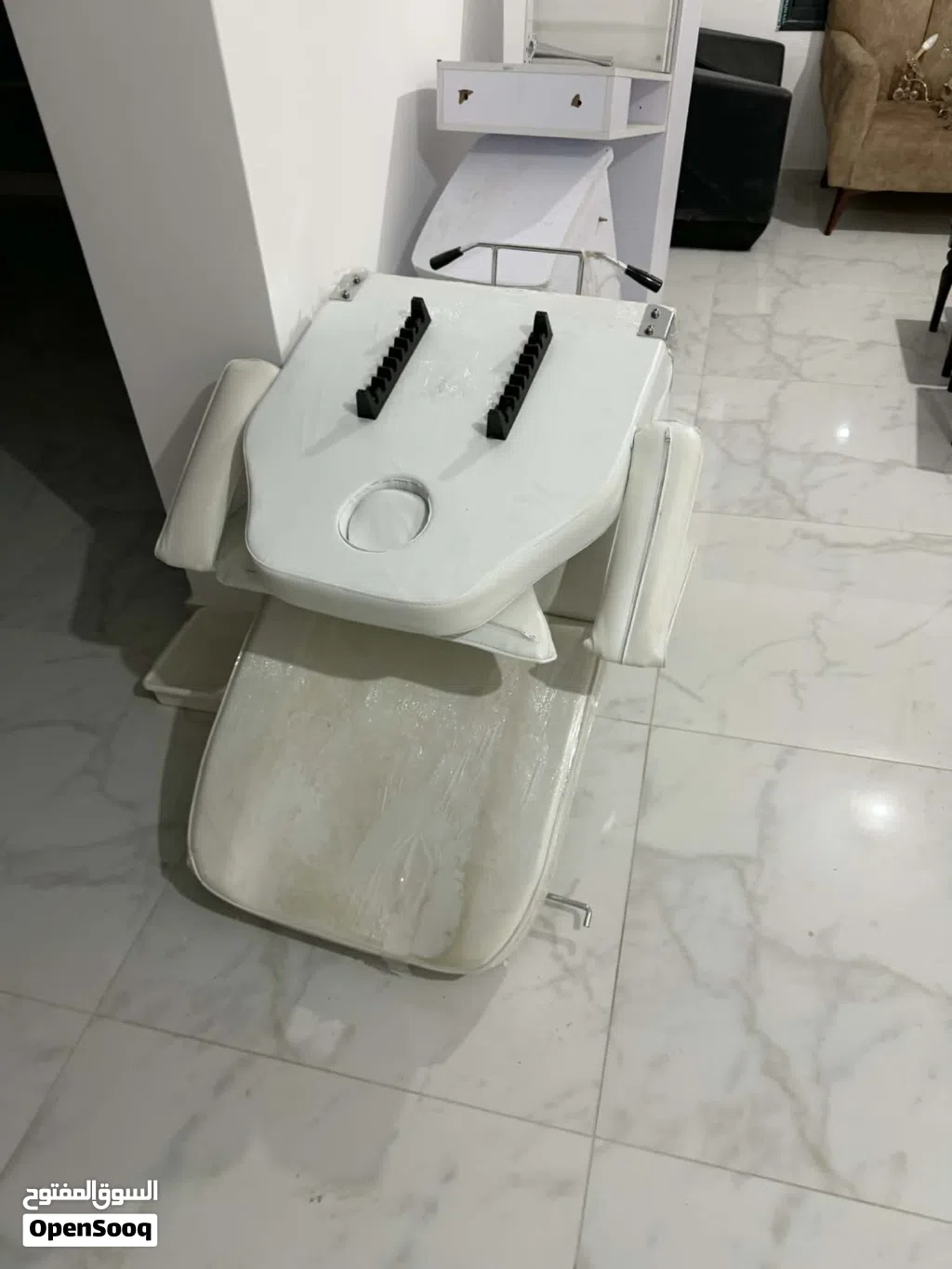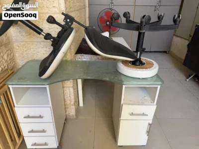 يوجد كرسي مساج وطاولة اضافر مع كراسيها وماكينة بخار ويوجد جهاز ليزر شغال بس بده صيانة الي معني بسعر حرق