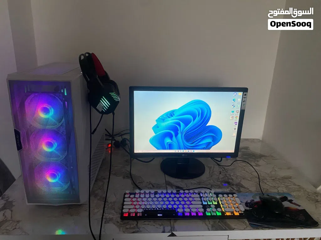 كمبيوتر العاب i5 4570 + ram 16gb +GTX 1050 2 gbمع شاشة و كيبورد و ماوس لا سلكي الكمبيوتر فيه سماعات