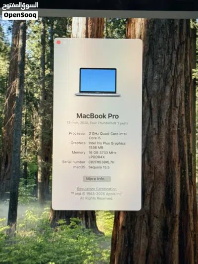 لابتوب MacBook Pro 13 إنش موديل 2020 بحالة ممتازة ونظيف جداً، استخدام شخصي وخفيف.