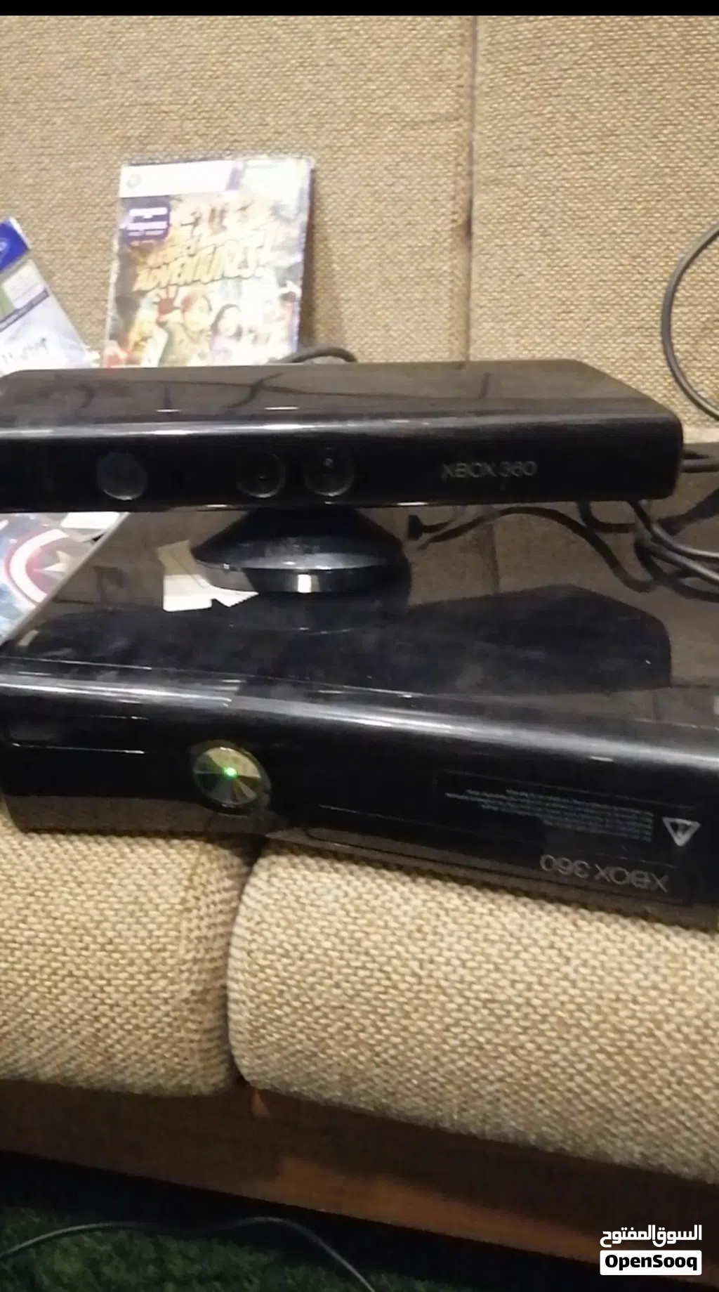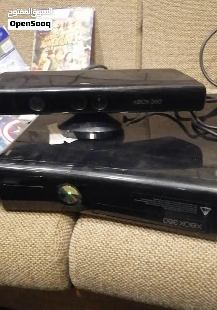 اكسبوكس مهكر مستعمل 360 بحالة جيدة مع كاميرا تفاعلية و 3 ايادي اصلية و 10 سيديهات العاب، الجهاز فيه كمية العاب كثيرة، فيفا وجي تي اي GTA وكثير شغلات