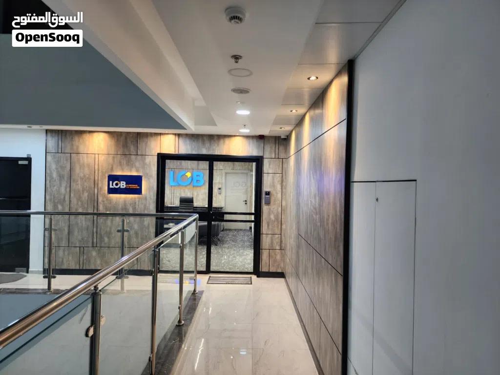 1- مساحة المكتب الداخلية 250 متر مربع + مساحة ترس خارجية بمساحة 50 متر مربع مطلة على المستحضرات الطبية.