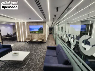 - مساحة مكاتب موظفين رقم 2 بسعة 8 مكاتب وخزائن للملفات وتلفزيون للعرض.
