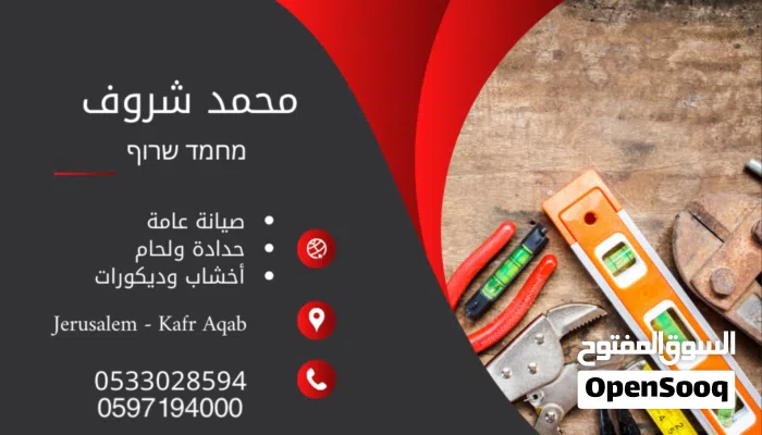 كافة اشغال الحدادة كذلك يمكن صيانة منزلية عامة في شتى المجالات بالإضافة الى اشغال الخشب والديكورات
