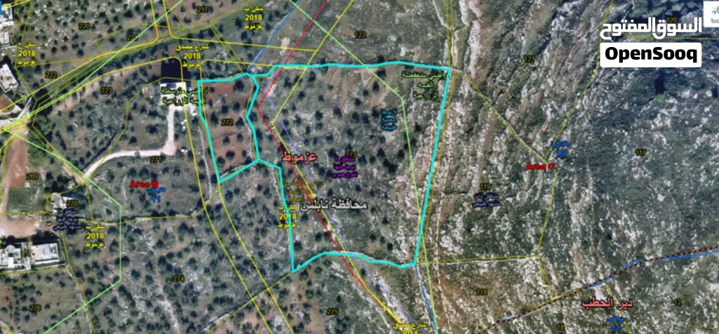 أرض للبيع في نابلس / عصيرة الشمالية حوض واد الصياد مزروعة زيتون متوفر كافة الخدمات اطلالة رائعة