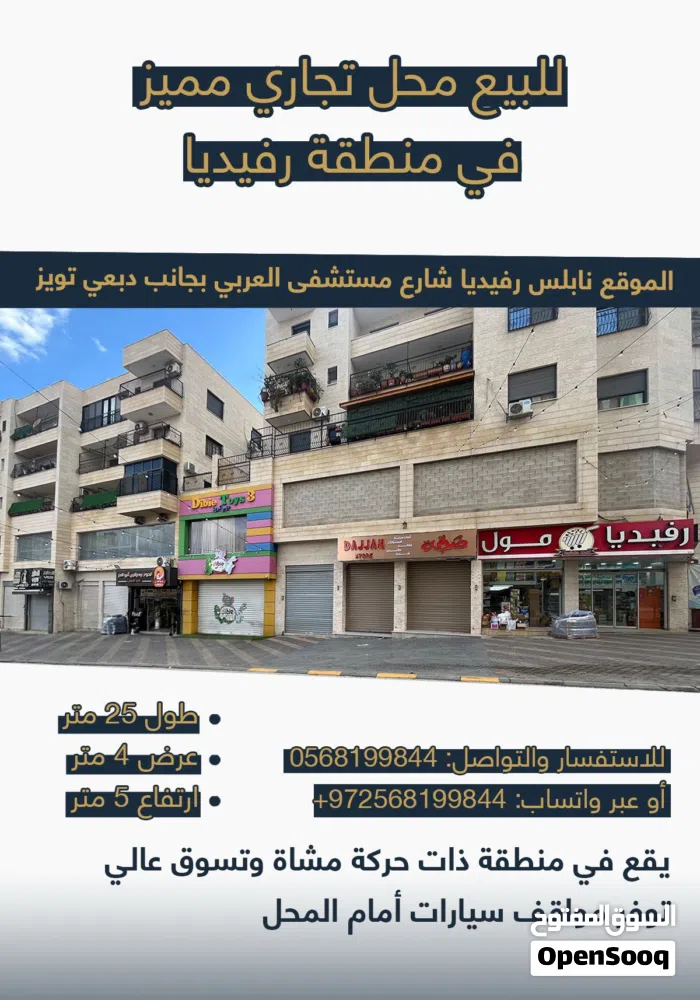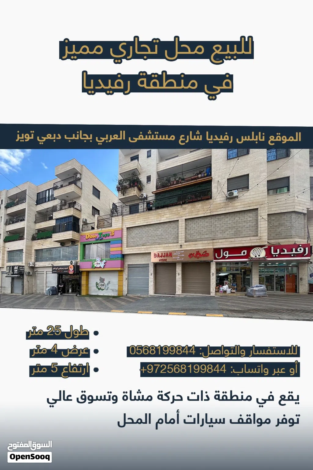 للبيع محل في رفيديا للبيع 100 متر في موقع حيوي