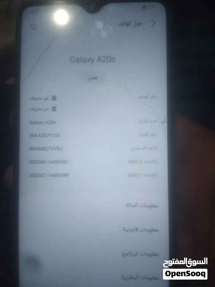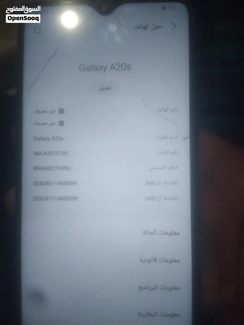 جلاكسي a20s حاله ممتازة حز بسيط في الشاشه فقط شغال 100% الكمرا المقدمه تطفي لحالها