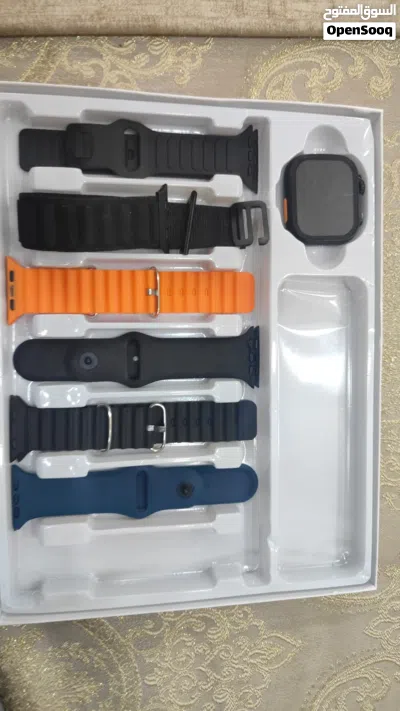 ساعه الترا 3 مستخدمه شخط صغير جدا بحاله ممتازه يمكن ربطها بالجوال باستخدام التطبيق الخاص+6 قشاط مع شاحنها الاصلي بتقدر تحط اي خلفيه من جوالك مميزاتها جميله فيها لعبه + بتقدر تتصل بدون شريحه فقط بربطها بالتطبيق+ قياس دقات القلب و غيرها و جميع الرياضات