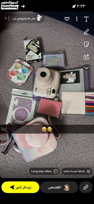 متوفر كميرا وردية اللون تحتوي معها جميع اغراضها مدة الاستعمال اسبوع واحد فقط وهي جديدة