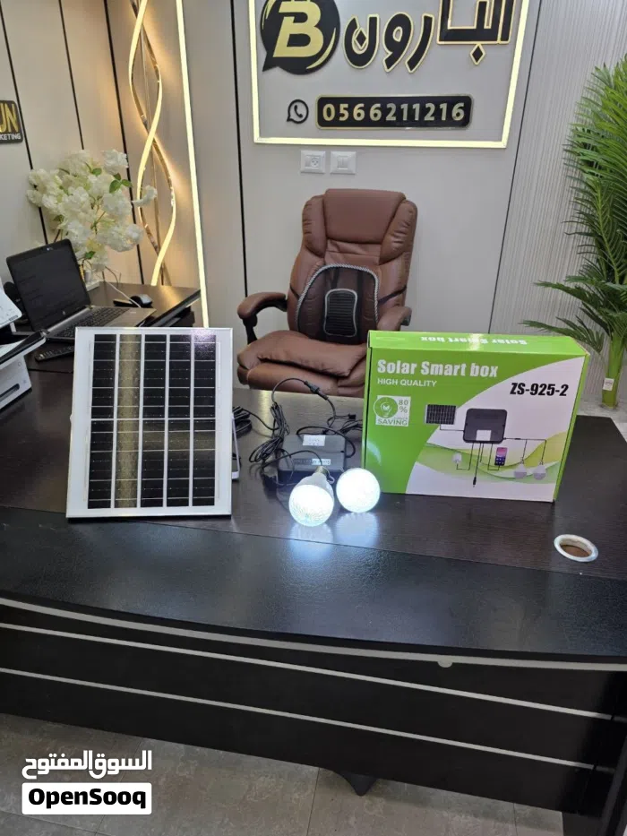 نظام إنارة طاقة شمسية متكامل (Solar Smart Box) لوح طاقة شمسية قوي لشحن سريع بطارية داخلية قوية .