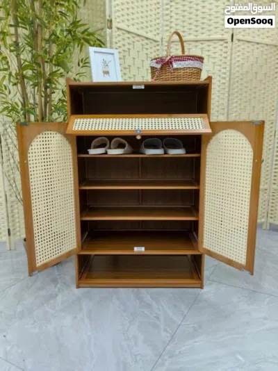 خزانة البامبو الدفتبن مع رف