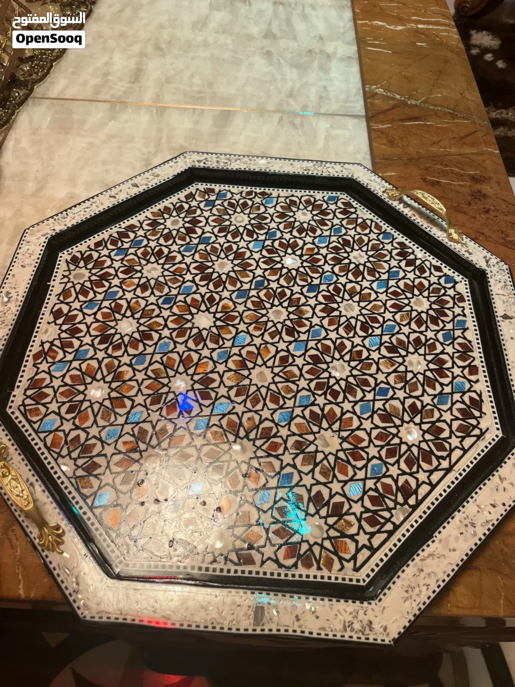 صينية فخمة وتقيلة وهادي خصيصا للناس الذوق تفاصيلها بتحكي عنها والكسبان لرح ياخدها متجري الصغير بكبر فيكم وبدعمكم ببيع قطع مميزة للماس المميزة