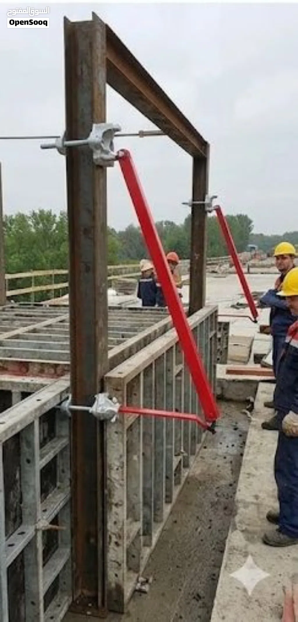 تُثبت هذه الحمالة على عمود حديدي أو ماسورة (مثل أعمدة السقالات أو أعمدة بناء) ثم يركّب عليها ونش السحب أو الرفع الكهربائي/اليدوي، بحيث تسمح برفع مواد البناء أو الأدوات إلى الطوابق العليا بسهولة وأمان.