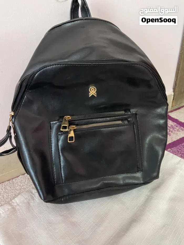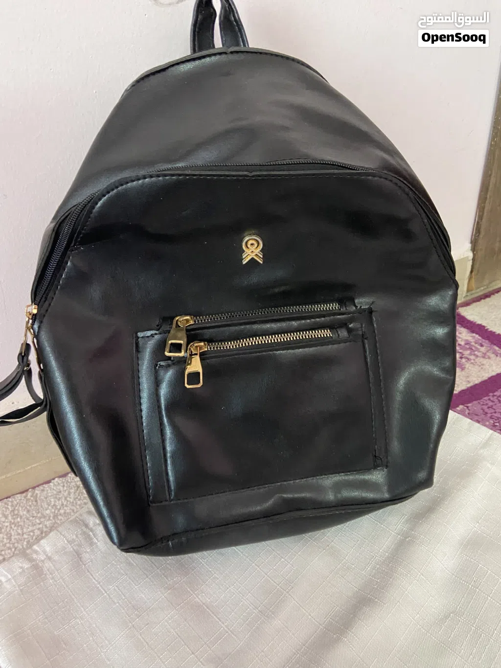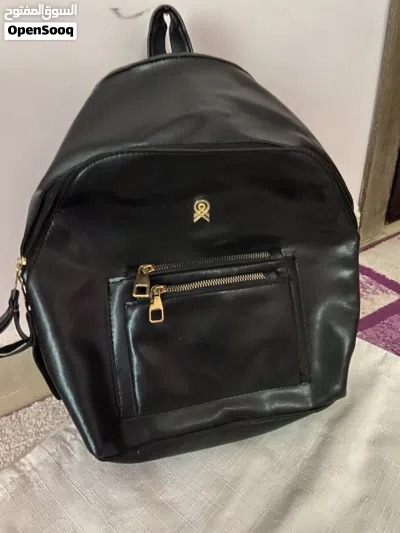 حقيبة ظهر بثلاث جيوب سحاب جلد اسود