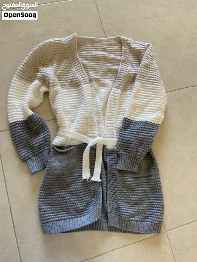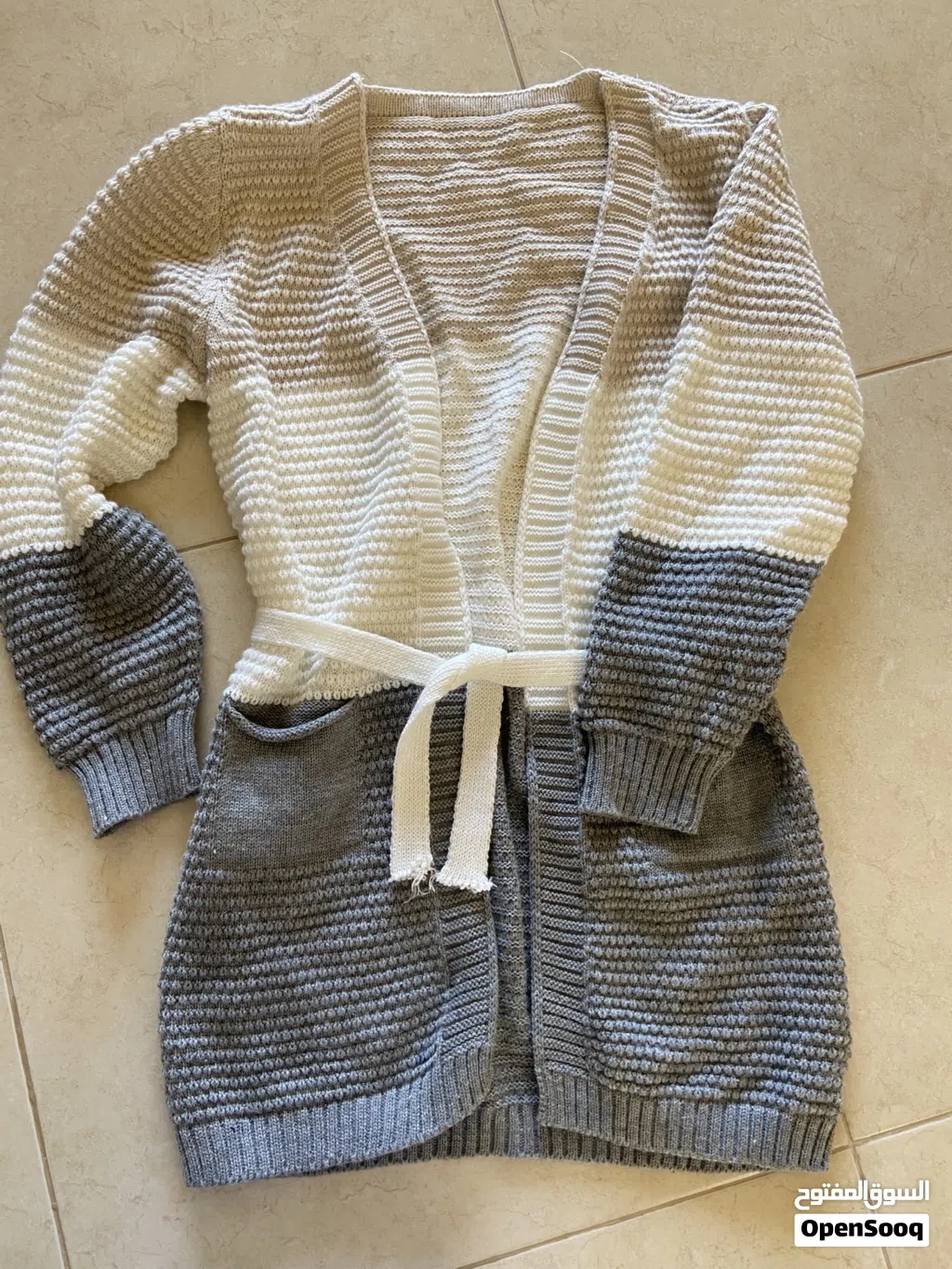 جكيت صوف مقلم بثلاث الوان طويل وساتر جميل مناسب للبنات والصبايا