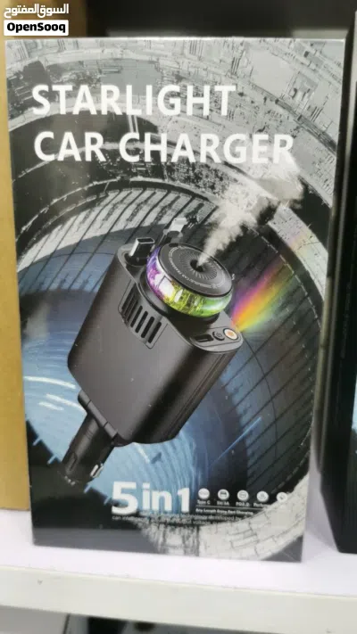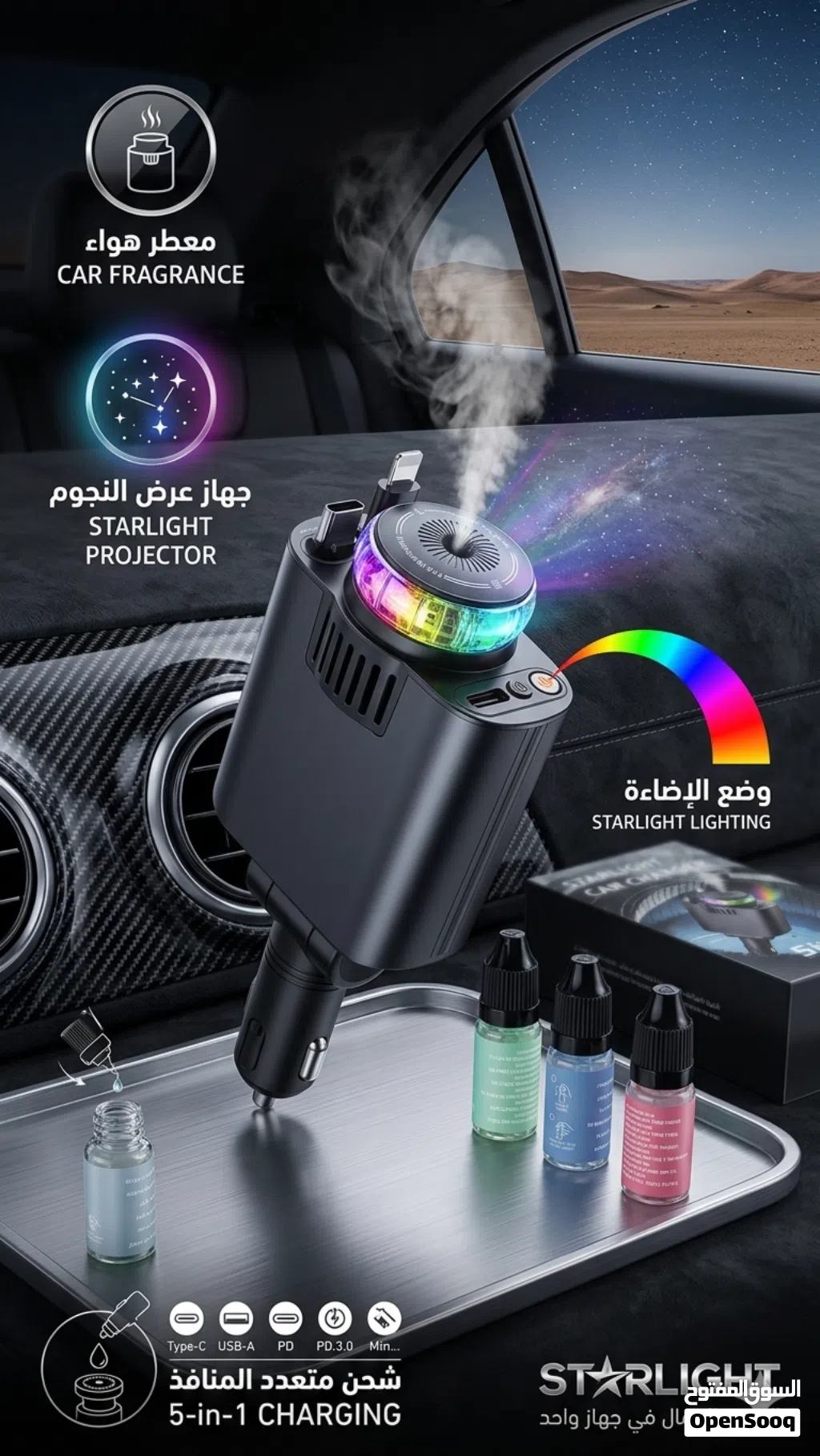 شاحن السيارة العجيب 5 في 1 (شاحن سريع + معطر جو + بروجيكتر نجوم)