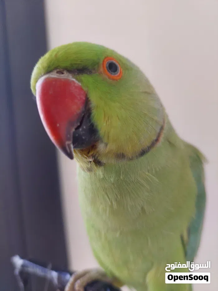 ببغاء درارة هندي ذكر اسمو كوكو عمر سنتين مطوق اليف جدا ما بعض نهائي لعوب بحب الاطفال
