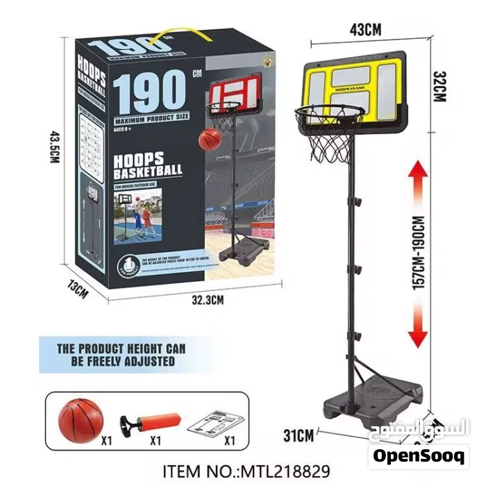 محتويات الصندوق: الستاند، اللوحة، الشبكة، الكرة، والمنفاخ.