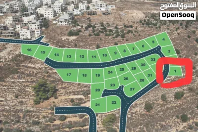 قطعة أرض للبيع منطقة A سكن تقع على شارعين قرية عبوين. رام الله