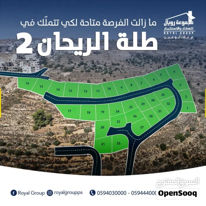 قطعة ارض بموقع حيوي ولها مستقبل واعد وشارع مستقبلي يربطها بشارع الطيرة الجديد تقع الارض خلف لكاسا مول ضمن مشاريع ابو عين العقارية من اراضي المزرعة القبلية مساحة الارض 500 متر مربع مشاريع طلة الريحان هي مشاريع فاخرة تمتد من طلة الريحان 1 الى 5