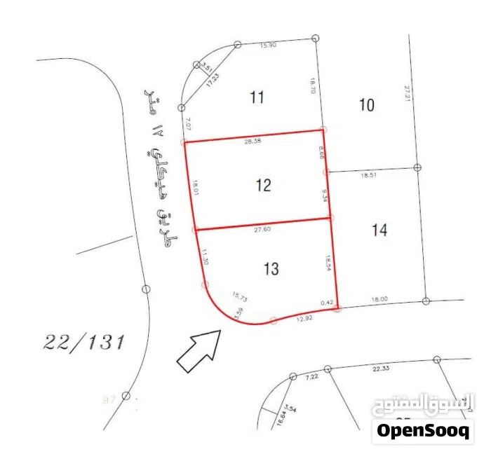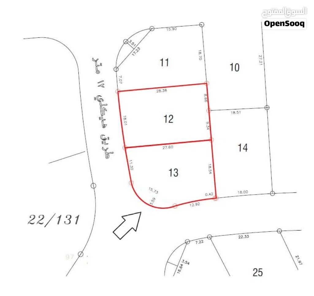 الارض تقع على شارعين 12م كم هو واضح في الصورة المرفقة