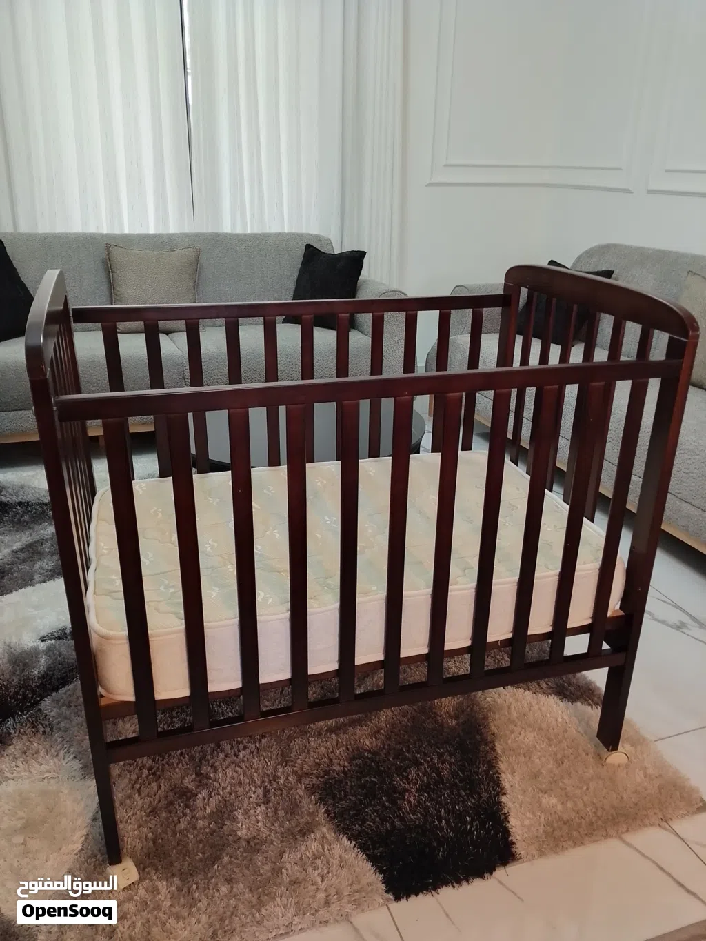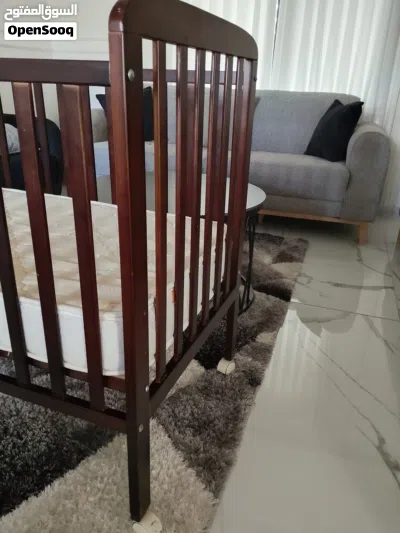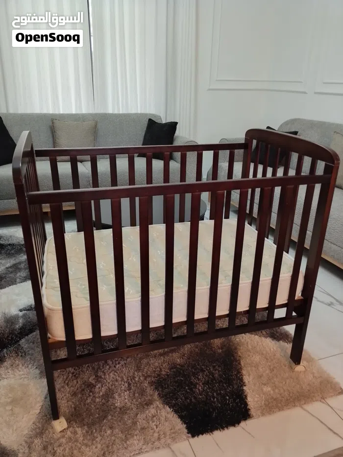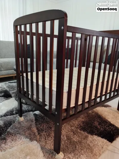 سرير طفل مستعمل للبيع ، الخشب بحالة ممتازة ، الفرشة بحالة ممتازة ، حتى عمر سنتان ، مرفق صور .