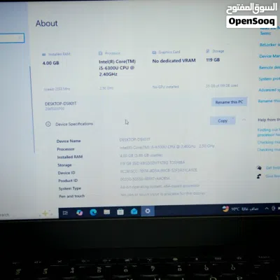 المعالج: Intel Core i5-6300U (جيل سادس) بسرعة 2.40GHz