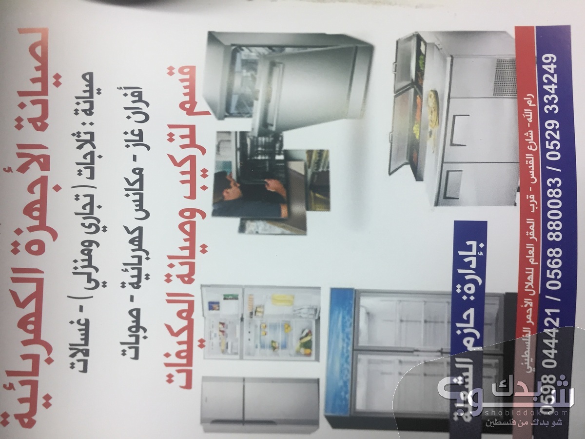 صيانة جميع أنواع الأجهزة الكهربائية ( تجاري ومنزلي ) ثلاجات غسالات نشافات أفران غاز تركيب وصيانة مكيفات .