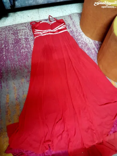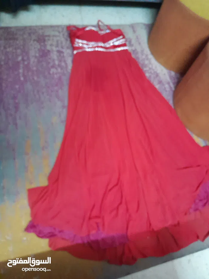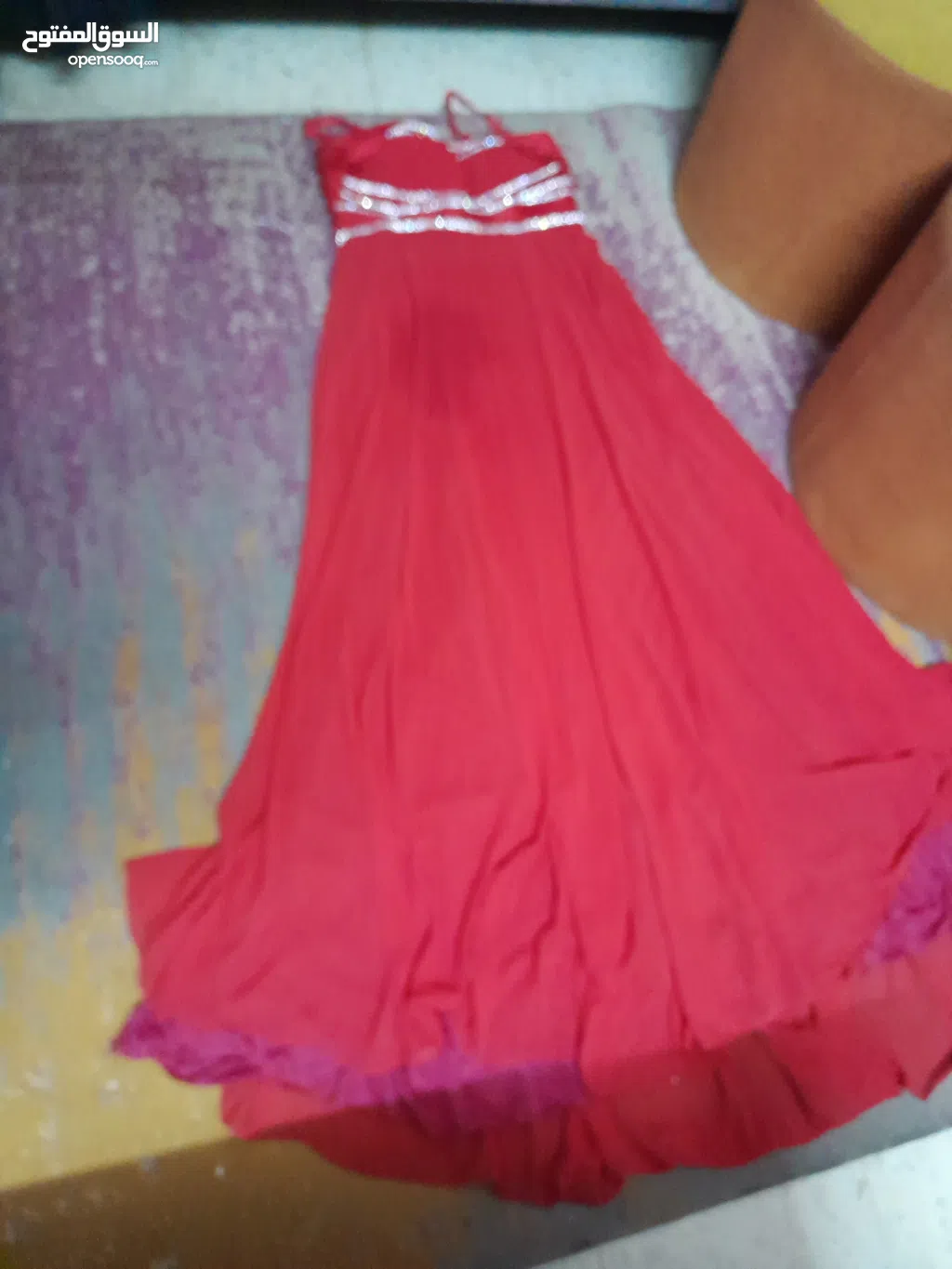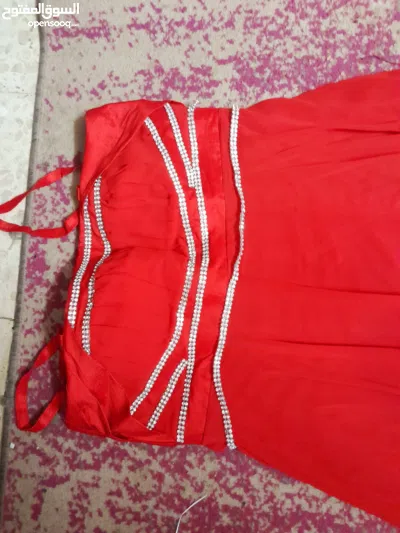 فستان سهرة لون احمر مرصع عند الصدر لم يلبس ابدا بس قديم سيتم غسلو بالدراي كلين عند الاستلام