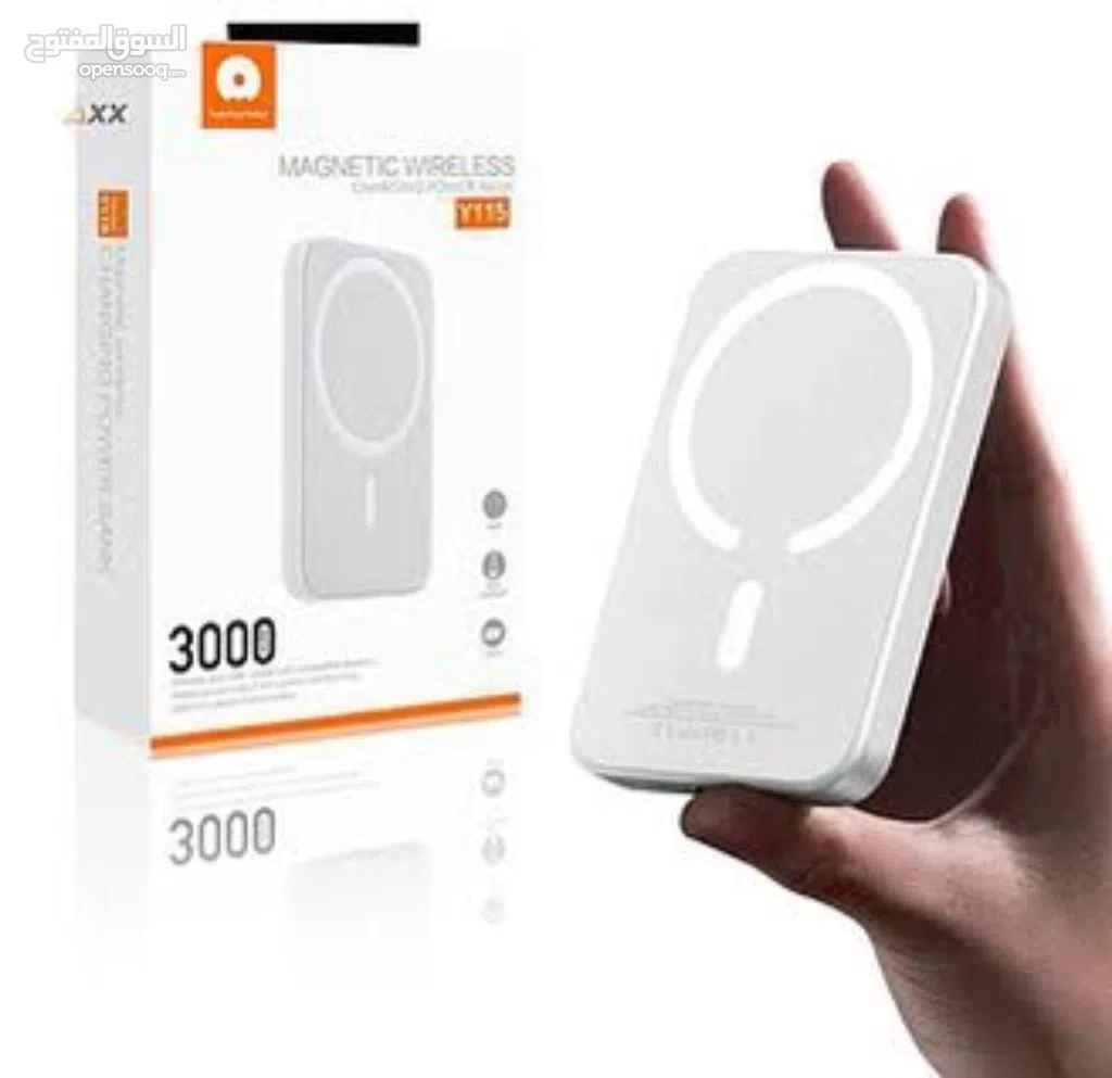 باور بانك مغناطيسي يعمل على جميع اجهزه الايفون والسامسونج وجميع الاجهزه التي تدعم الشحن الاسلكي