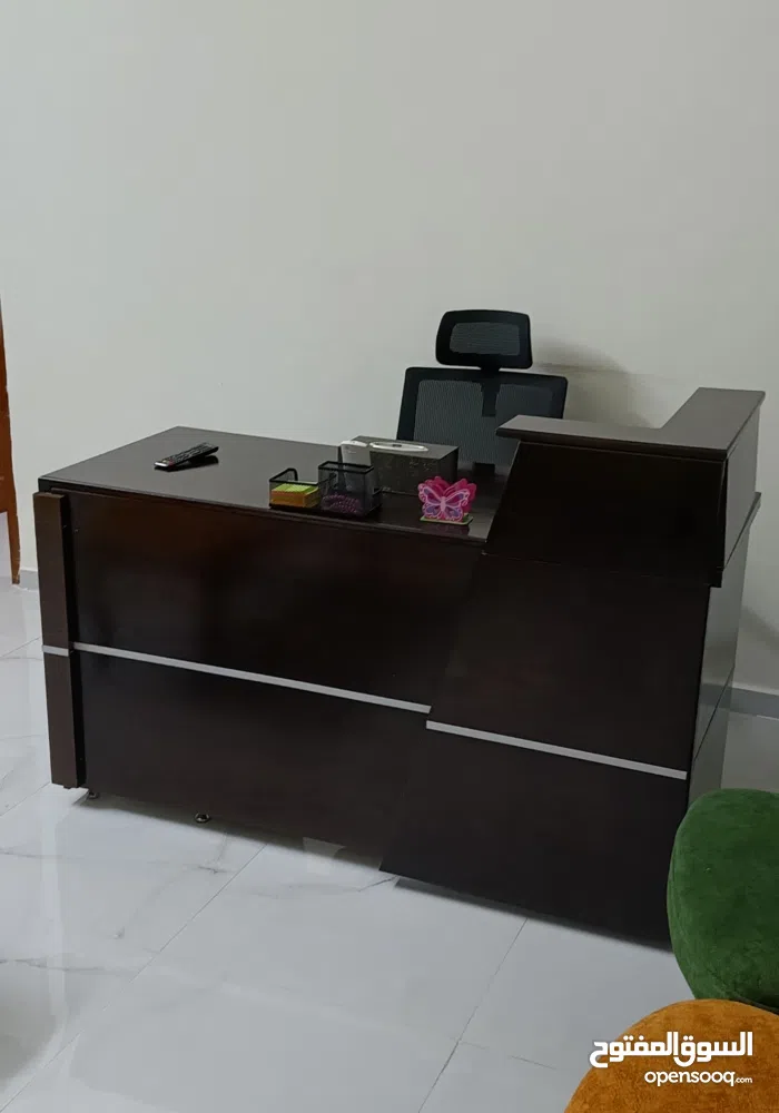 مكتب رسبشن تفصيل محلي خشب تقيل استعمال بسيط جدا شبه جديد البيع بسبب التجديد .