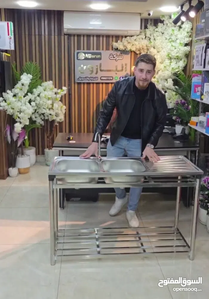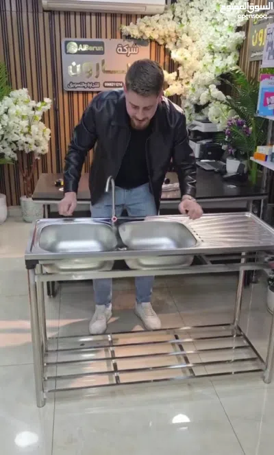 حوض ستانلس ستيل مزدوج مع ستاند كامل قوة، ترتيب، واعتمادية حوضين كبار لراحة وسرعة أثناء الغسيل .