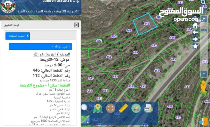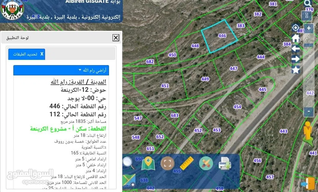 رام الله ارض للبيع 1835 في الكرينعه