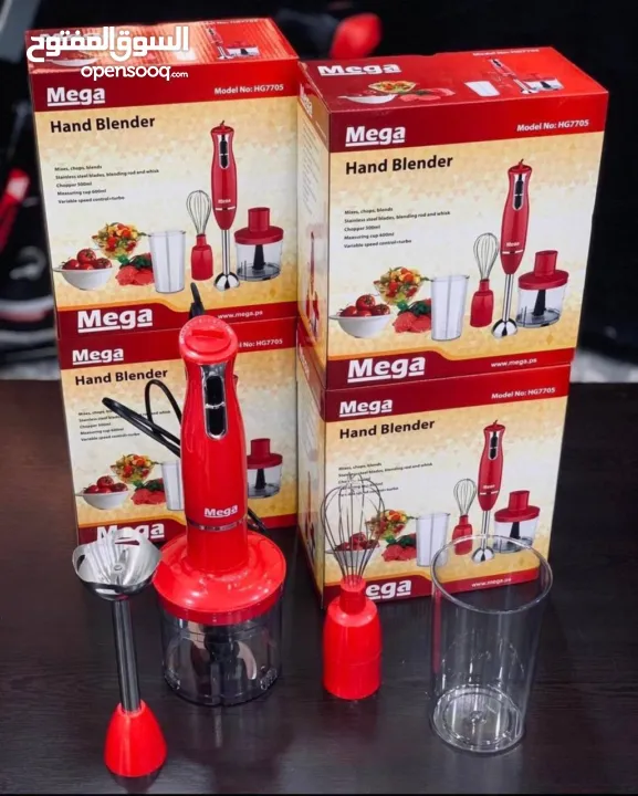 1. خلاط يدوي (Hand Blender): لخلط الحساء، العصائر، والصلصات مباشرة في الوعاء.