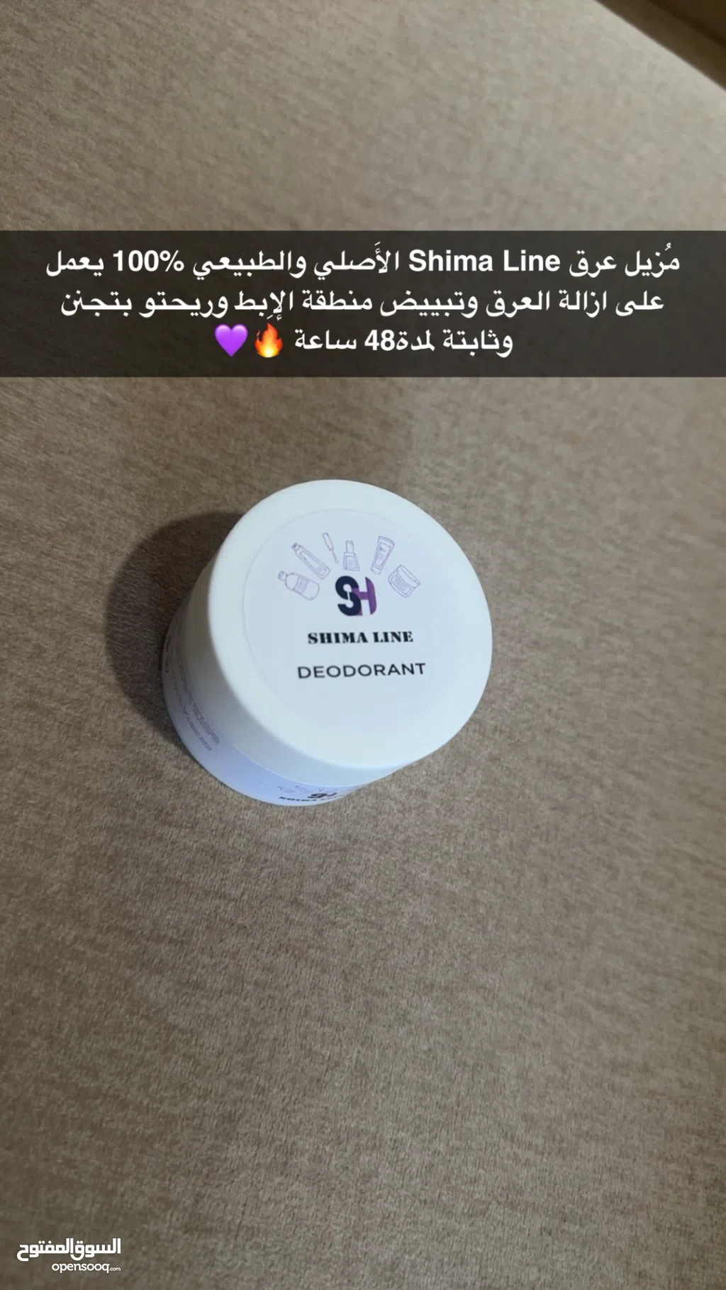 مزيل عرق Shima Line طبيعي 100% يعمل على ازالة العرق لمدة 48 ساعة ورائحته رائعة جداً ويعمل على تبييض منطقة الابط