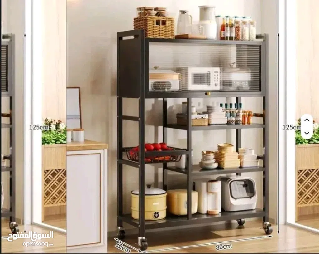 بنقدملك منظم لاجهزة المطبخ والخضروات يحتوي على سلات ورفوف متعددة بشكل عصري ومتعدد الاستخدام
