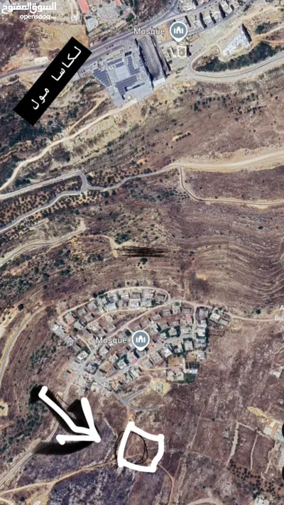 ارض على قمة الجبل اراضي المزرعة مقابل لكاسا مول على شارعين هيكليين دونم صافي بعد الشوارع تصنيف سكن أ