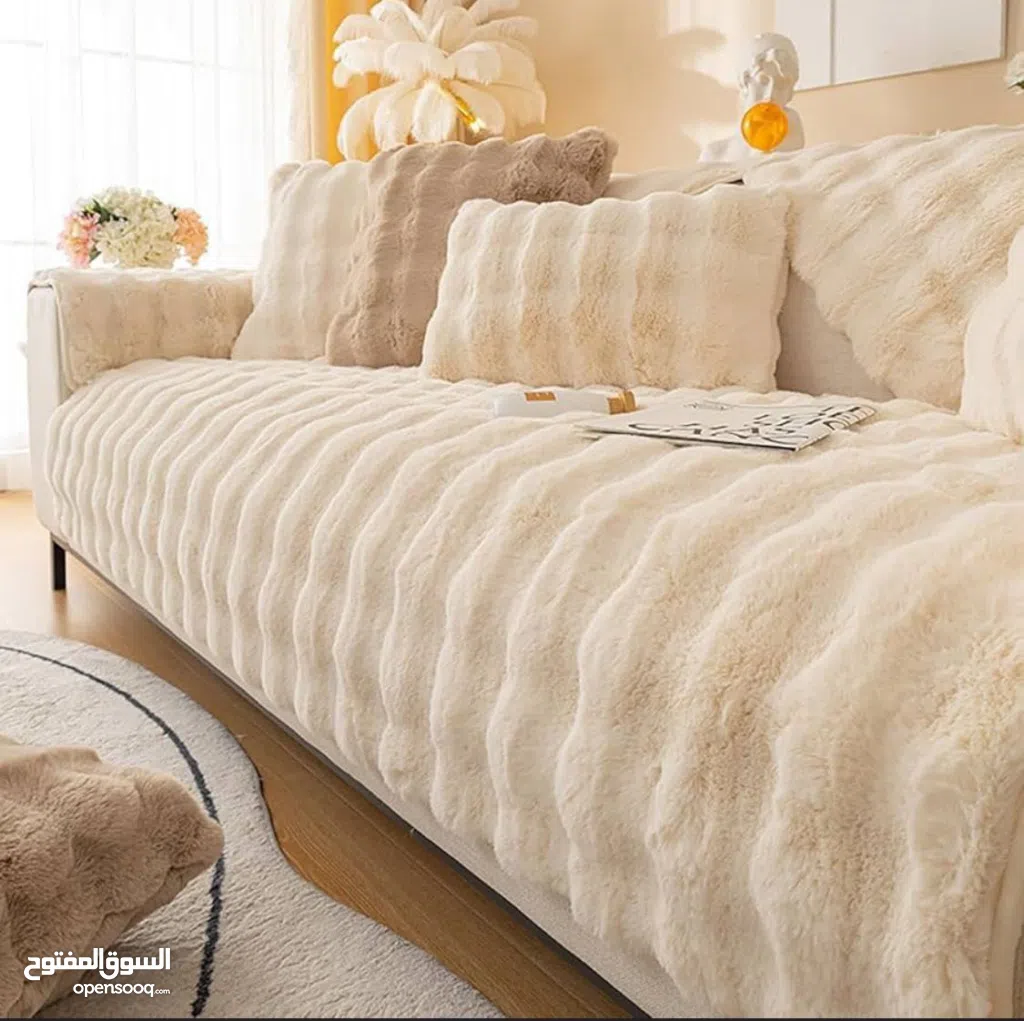 الخامة ثقيلة فعلياً ... مش نفس الموديلات الخفيفة اللي بتتعجّق وبتخفّ بعد أول استخدام. الطقم بثبت على الكنب وما بيلف، وما بطلع وبر، وغسيله سهل وبيضل زي الجديد دائماً.