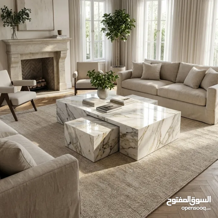 تتكون من طاولة مستطيلة ومكعبين جانبيين، تضيف لمسة فنية وعملية لأي مساحة معيشة.