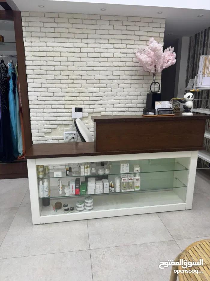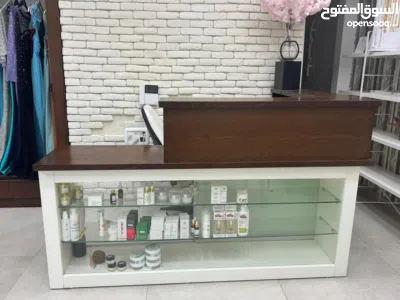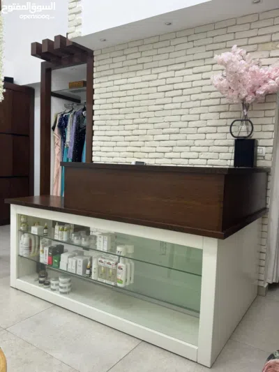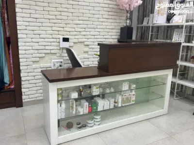مكتب رسبشن مع خزانة دفات مرايا جانبية بحالة ممتازة