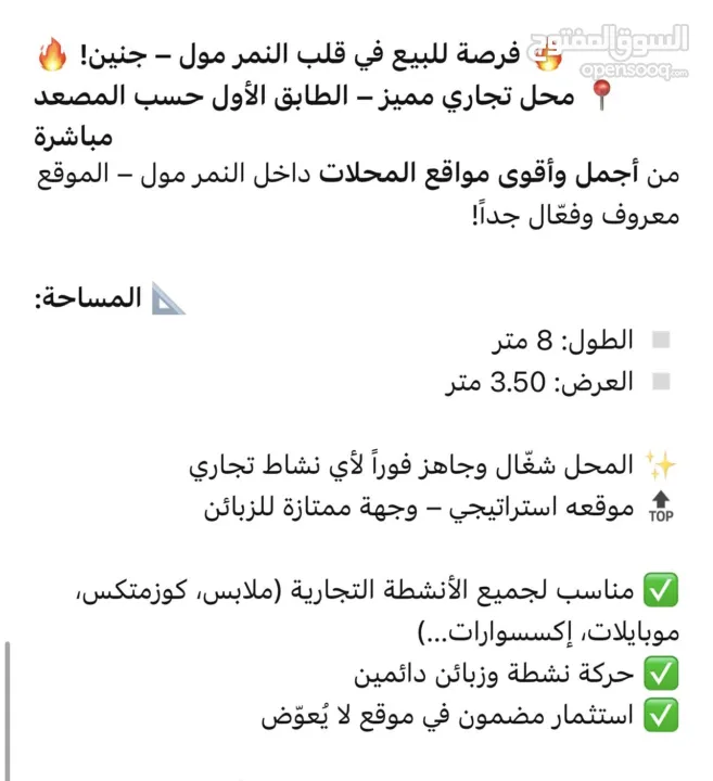 محل تجاري من اجمل محلات في النمر مول الطابق الاول ع المصعد محل شغال وموقع ممتاز