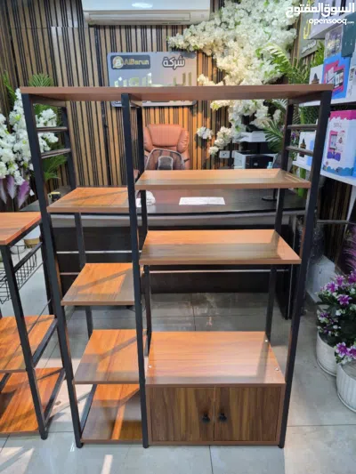 عدة رفوف واسعة لعرض المنتجات أو الأغراض