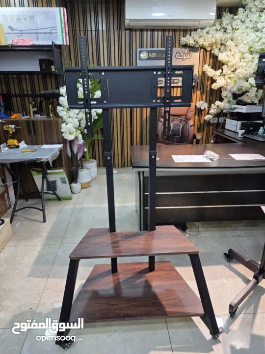 ستاند تلفزيون متحرك حديد + خشب (ثقيل ومتين)