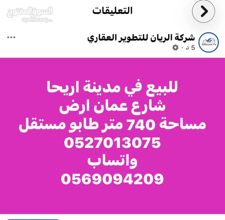 ارض مساحة 741 متر طابو مستقل