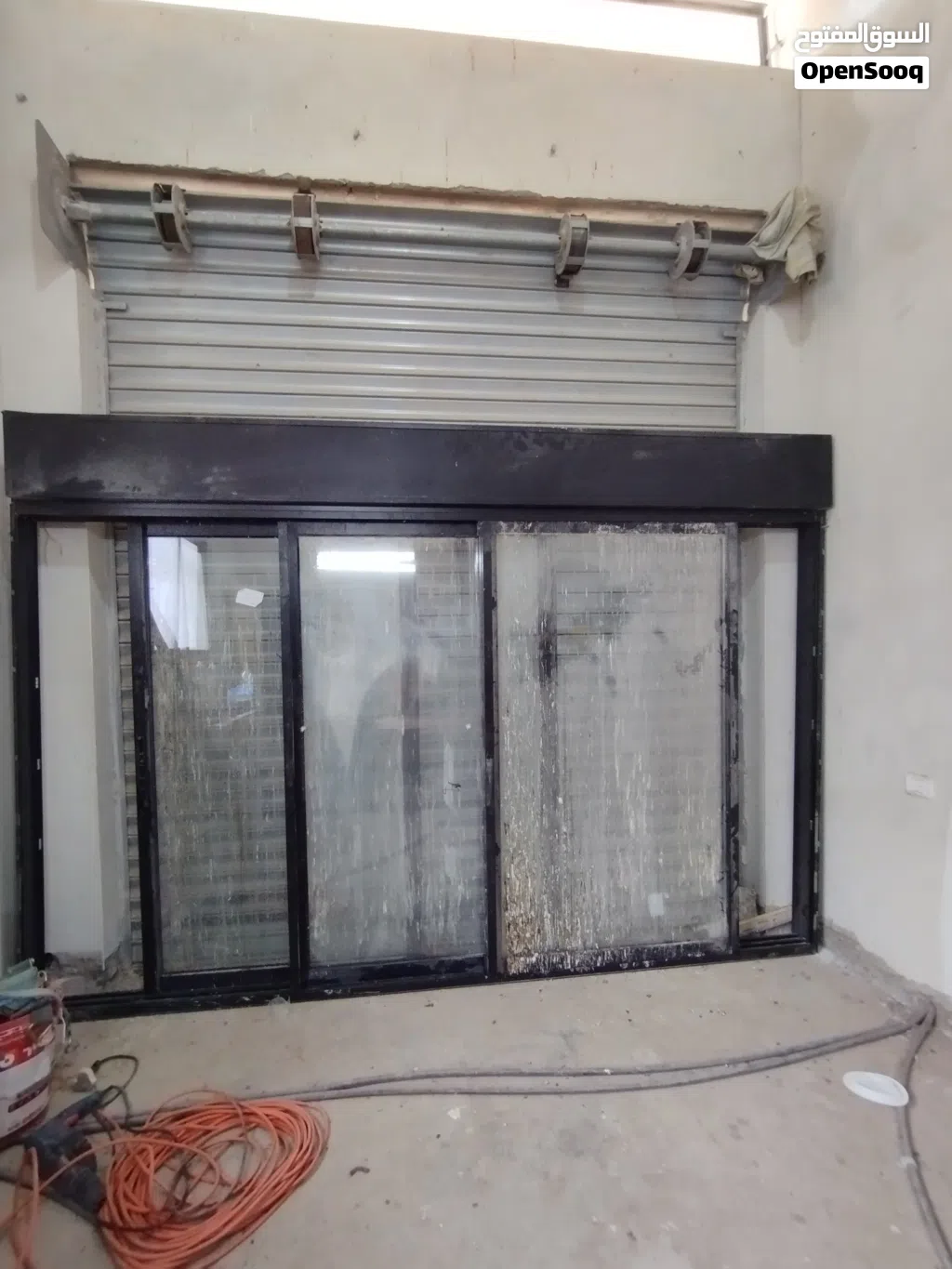 حلق المنيوم مع ابجور وماتور خارجي بنفع شباك وبالاصل هو لبلكونة او باب محل تجاري غير مستعمل بعد التجميع تبين قياسه غلط