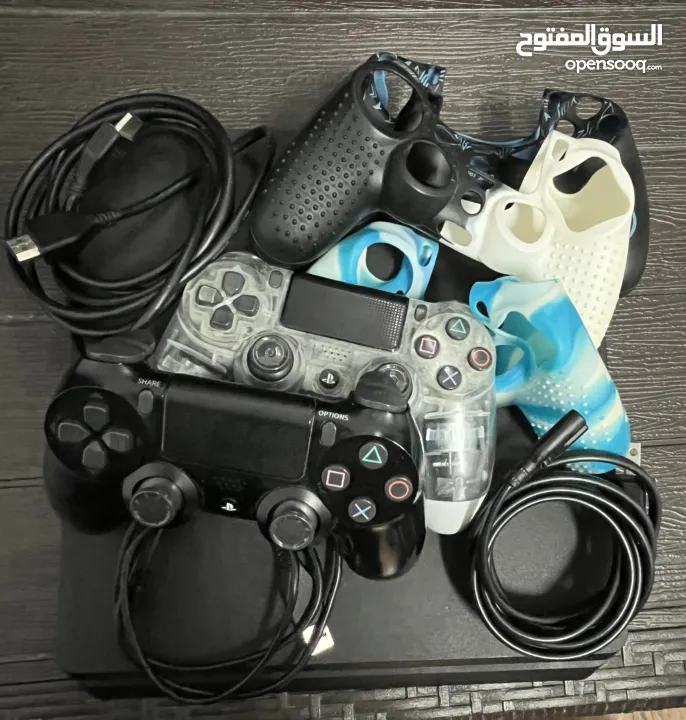 بلايستيشن 4 slim بحالة ممتازة مع جميع قطعها الأصلية و اسلاكها الاصلية مع إيدين و 3 كفرات لليد و 3 ألعاب ( gta5, farcry4 ,LEGO worlds) شغال 100٪ مش مفتوح ولا مرة مصلح استعمال خفيف