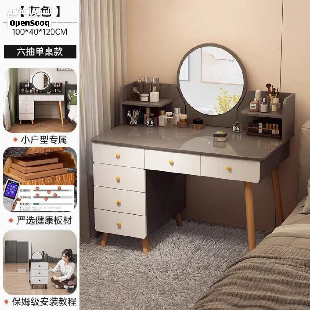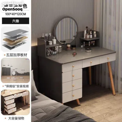 يحتوي على 6 جوارير ورفوف علوية لترتيب وتنظيم الاغراض.