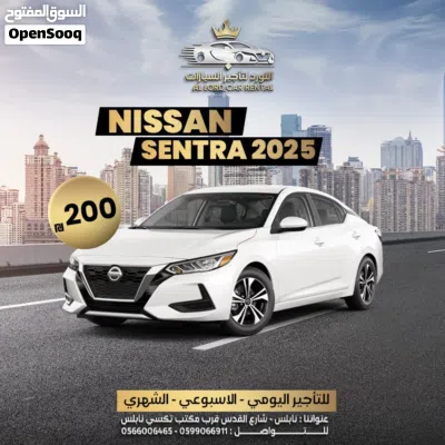 سيارة نيسان سنترا 2025 ب 200 شيكل للايجار